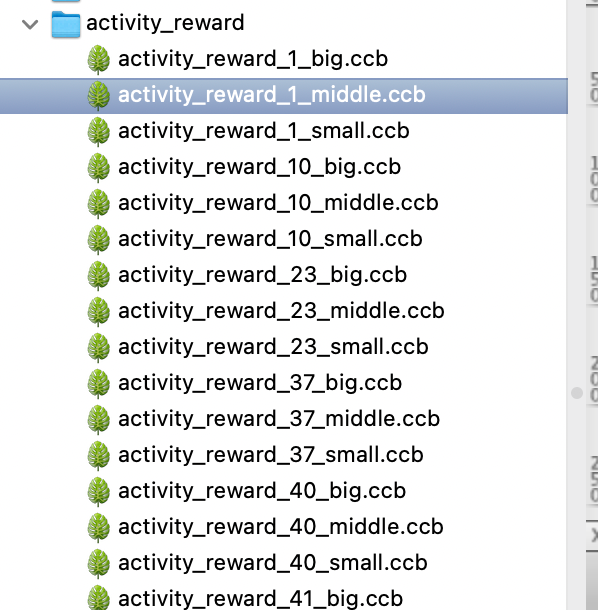 i、将工程里预制的三个 ccb 拷贝一份出来,修正文件名中的数字为新增类型数字,修正最外层节点的 tag 为新增类型数字(新增的奖励类型数字提前跟程序要);